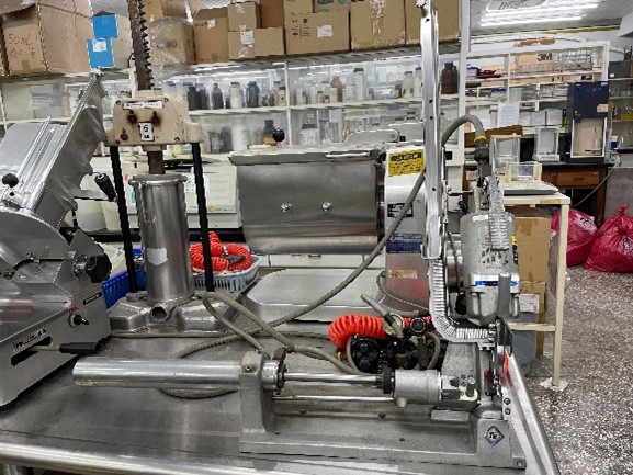 作者: 畜產系 / 2021-08-14 畜產加工實驗室(一) AG212 畜產加工實驗室設立之宗旨,為提供同學除了藉由課堂及書本上所能獲得理論知識外,更可透過實際操作及製造產品之過程,將理論與應用相結合,更加深同學對授課內容之印象。本實驗室有助教一名,除教授實習操作外,並負責管理及協調實驗室之使用情形,以期達到最佳之利用狀態。 主要使用課程:肉品加工學實習、乳品加工學實習(肉品及乳品) 拉力打釘機全自動切肉機煙燻室乳化機混和攪拌機貝式離心機質地分析儀